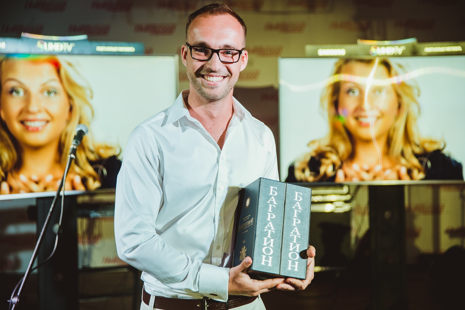 Второй — коллекционный коньяк «Багратион» 20-летней выдержки, произведенный на знаменитом Кизлярском коньячном заводе и предоставленный партнером мероприятия, компанией «Элида Групп», — достался представителям рекламного агентства ReAd Андрею Лиханову и Андрею Сагину.