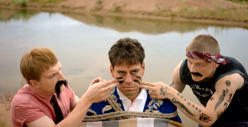 Дебютная полнометражная работа Ильи Учителя, сына режиссера Алексея Учителя, получила название «Огни большой деревни» и прокатную дату 2 февраля. По сюжету власти хотят превратить провинциальный кинотеатр «Родина» в магазин, но киномеханик Федя придумывает план – снять успешный фильм и собрать кассу. Для фильма нужна звезда – и сельчане похищают Дмитрия Дюжева (его играет, разумеется, Дмитрий Дюжев). Из показанного материала вырисовывается неплохая комедия абсурда.