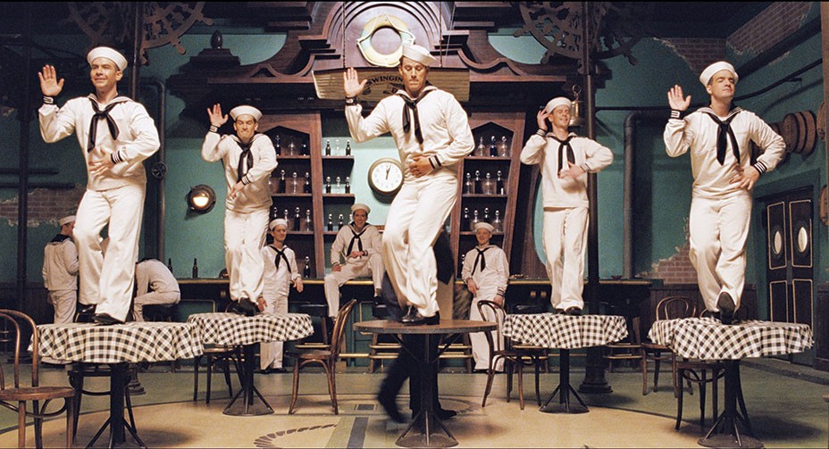 Татум (в центре) работает под Джина Келли в классической сцене из мюзикла. На съемках также использовались винтажная камера и осветительные приборы. «Мы взяли старую технику, - делится арт-директор, - и сняли все предельно естественным образом, как любят Коэны». В фильме очень насыщенные цвета, начиная от контрастной картинки в сценах из одноименного «фильма в фильме» и заканчивая монохромом в сценах на съемочных площадках. «Мы попытались преувеличить реальность в картине, - говорит Гончор. – Коэны любят подталкивать своего зрителя, выбивать его из зоны комфорта».