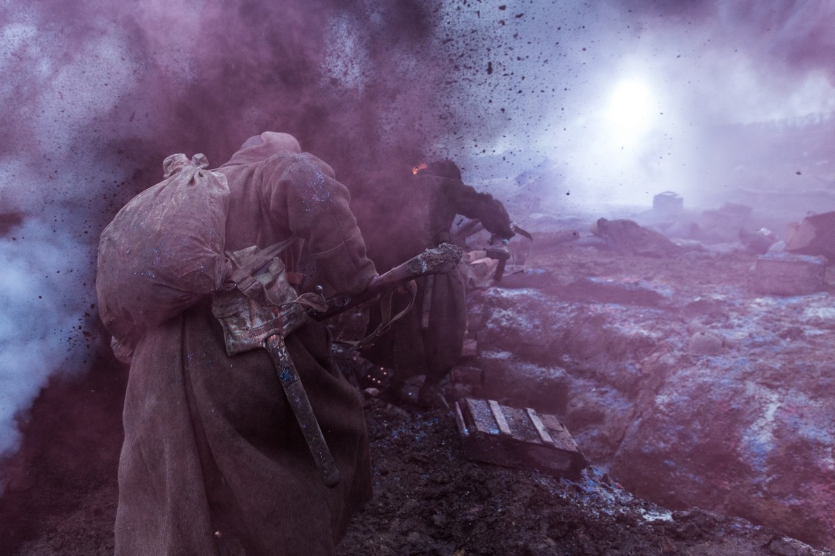 Во время съемок военных эпизодов землю обливали специальной краской. Разных цветов были и оружие, танки и шинели солдат. Такое решение режиссера обусловлено желанием показать сражение по-новому, более эффектно и кинематографично. «Серые шинели, все грязное, монохромное — зрительское восприятие от этого притупляется, — поясняет режиссер Дмитрий Тюрин. — Поэтому решили добавить яркости. Но к этой эстетике быстро привыкаешь, она уже не выглядит так дико, как кажется на первый взгляд».