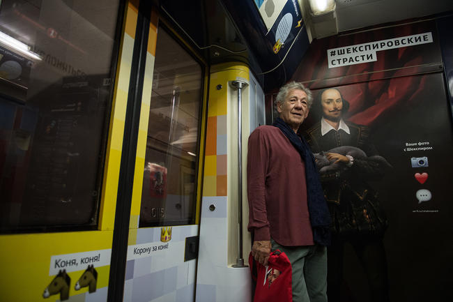 Актер прогулялся по территории Кремля, а после спустился в московский метрополитен. Правда, увидеть МакКеллена можно было только в «шекспировском поезде» на Филевской линии.