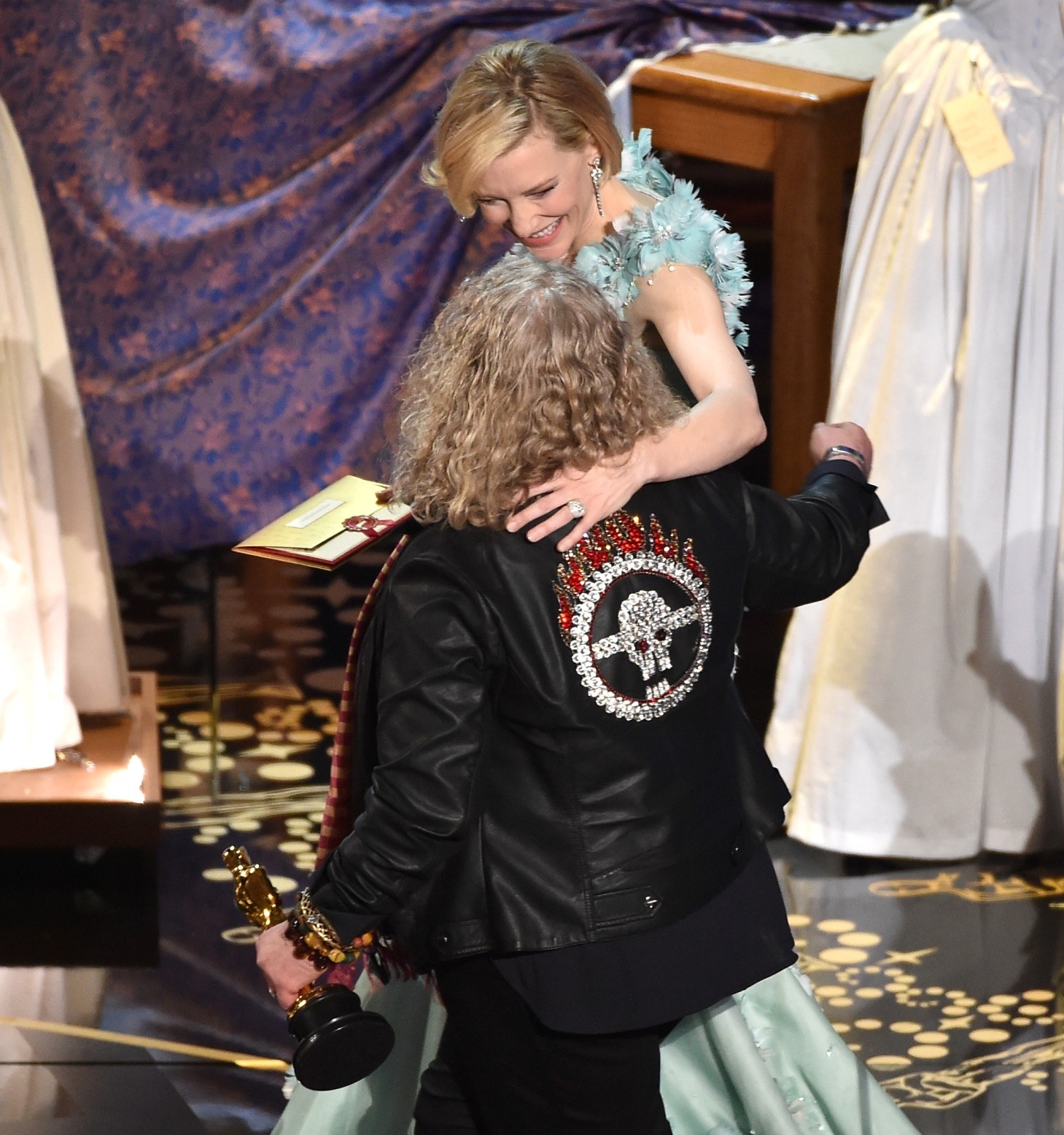 Кейт Бланшетт и Дженни Биван Дженни БиванДвукратная обладательница премии «Оскар» говорит о Джордже Миллере, Стивене Фрае, рассказывает о байкерском костюме и комментирует ролик с ее участием, который набрал свыше 40 млн просмотров.Награждение Леонардо ДиКаприо «Оскаром» спровоцировало целую волну мемов, но было на церемонии и другое яркое событие, которое удостоилось вирусного ролика, набравшего без малого 40 с лишним млн просмотров. Мы говорим о памятном выходе на сцену Дженни Биван, которая получила из рук Кейт Бланшетт награду за лучшие костюмы в «Безумном Максе». Теперь уже двукратная лауреатка премии (в общей сложности у нее 10 номинаций на «Оскар») пришла на главное кинособытие года в украшенной стразами байкерской куртке, полосатом красно-золотом шарфе, брюках и грубых ботинках.