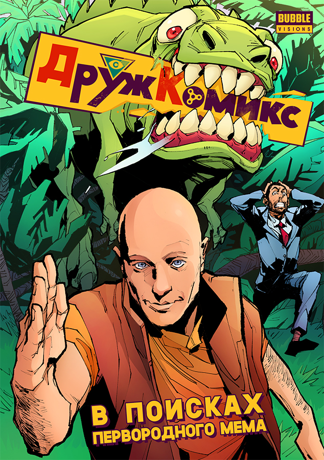 Обложка "Дружкомикса" Редакция THR RussiaИздание расскажет о приключениях ведущих DRUZHKO Show Сергея Дружко и Льва Шагиняна в полном опасностей мире интернет-мемов.Гостями Comic Con Russia 2017, который пройдет в Москве с 28 сентября по 1 октября, станут ведущие DRUZHKO Show Сергей Дружко и Лев Шагинян. Дуэт представит на фестивале новый комикс имени себя, выпущенный специально для Comic Con Russia издательством BUBBLE – «Дружкомикс: в поисках первобытного мема». В нем Дружко и Шагинян путешествуют в полном опасностей мире интернет-мемов. Это пока все, что известно о проекте – все детали поклонники узнают 1 октября, когда Сергей и Лев представят комикс, а после дадут автограф-сессию.