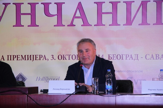 — Есть три причины, почему мы здесь. Во-первых, потому что Сербия раскрыла двери всем тем, о ком мы говорим в нашем фильме, — всем русским, которые были вынуждены покинуть Родину. Вторая причина — на картине работали наши сербские коллеги: Милош Бикович, Станислав Попович, монтажер Мича Заец. Третья причина — эмоциональная. Мировая премьера — это день рождения картины, а дни рождения мы стараемся отмечать с друзьями. Поэтому мы приехали сюда, а не в Брюссель (аплодисменты).