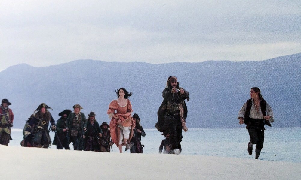 Самую эпическую сцену, ограбление банка, когда команда Джека Воробья утаскивает целое здание банка на повозке лошадей, мы сняли на самом деле, без компьютерных эффектов. Конечно, дом двигался с помощью автоприцепа, а не лошадей, но мы спрятали машину внутри декорации. По дому бегали пятеро каскадеров, изображая Джека Воробья и его преследователей. Вся цепочка сцен заняла две недели съемок.