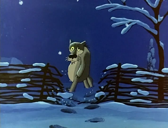 Кадр из мультфильма "Жил-был пес" Если про собак снята уйма фильмов, то про их диких собратьев, волков, как-то не очень. В западном кино в основном эксплуатируется тема оборотней. На их фоне обычных зверей словно позабыли, оставив за дверьми киностудий. Но в советском кинематографе нашлось место великому произведению, объединившему в себе и собак, и волков, и людей, и всю сложную гамму отношений между ними, причём уложив всё это в десять минут в формате рисованного мультфильма. «Жил-был пёс» Эдуарда Назарова, почему-то считающийся комедией, по насыщенности серьёзным смыслом на единицу экранного времени превосходит все остальные картины этого списка, а финальная фраза Волка: «Ты заходи, если что» символизирует всю условность той границы, что отделяет цивилизованный и одомашненный мир от мира дикого, первоначального. Границы столь же хрупкой, как и плетёная изгородь, которую Волк лениво ломает, удаляясь в зимнюю украинскую ночь.