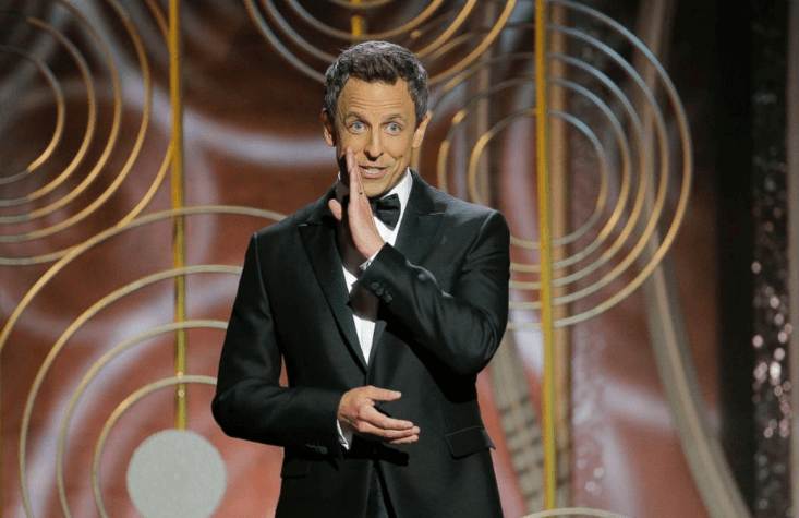 Ведущим церемонии выступал Сет Майерс – хозяин одного из самых популярных вечерних шоу на канале NBC. Естественно, Майерс не мог упустить главную тему всего вечера – нашумевшие в 2017 году скандалы о домогательствах и изнасилованиях. Начал вечер Майерс едкой фразой «Добрый вечер леди и оставшиеся джентльмены», намекая на то, что в Голливуде осталось не так много мужчин, чья репутация за прошедший год не пошатнулась.