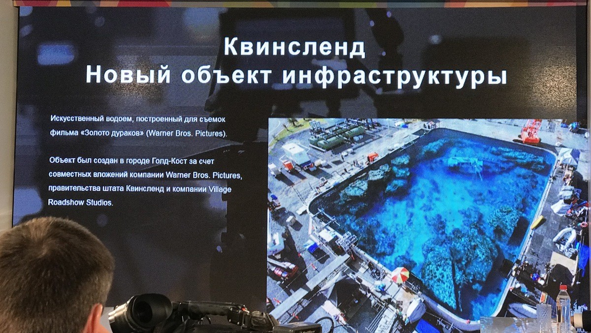 Коноплия привела пример работы кинокомиссии в Квинсленде, Австралия, где студия Warner Bros. Построила огромный искусственный водоем для съемок фильма «Золото дураков». Подобный объект инфраструктуры не удалось бы построить за счет средств из местного госбюджета — зато теперь он используется для съемок самых разных фильмов, включая картины Джеймса Кэмерона, а государство получает дополнительную прибыль.