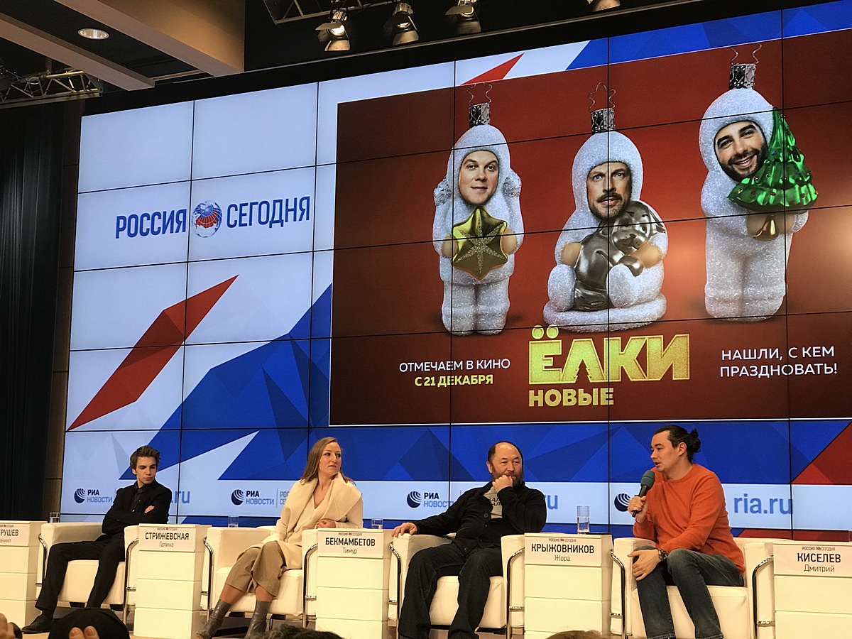 Тимур Бекмамбетов, Жора Крыжовников и Дмитрий Киселев на пресс-конференции Ольга БеликСъемочная группа представила «ёлочные» приключения журналистам и напомнила: их франшиза – вовсе не о новогоднем чуде.В Москве журналистам показали фильм «Ёлки новые» - шестую часть новогодней франшизы от Тимура Бекмамбетова. Новыми «Ёлки» стали потому, что продюсеры решили провести своеобразный перезапуск всей серии: ввести новых героев, вернуть некоторых старых, а легендарных вроде персонажей Урганта и Светлакова немножечко обновить. Но по сути – это все те же старые добрые «Ёлки»: альманах, в котором все новеллы выстраиваются вокруг главной линии, а герои так или иначе оказываются связаны между собой.