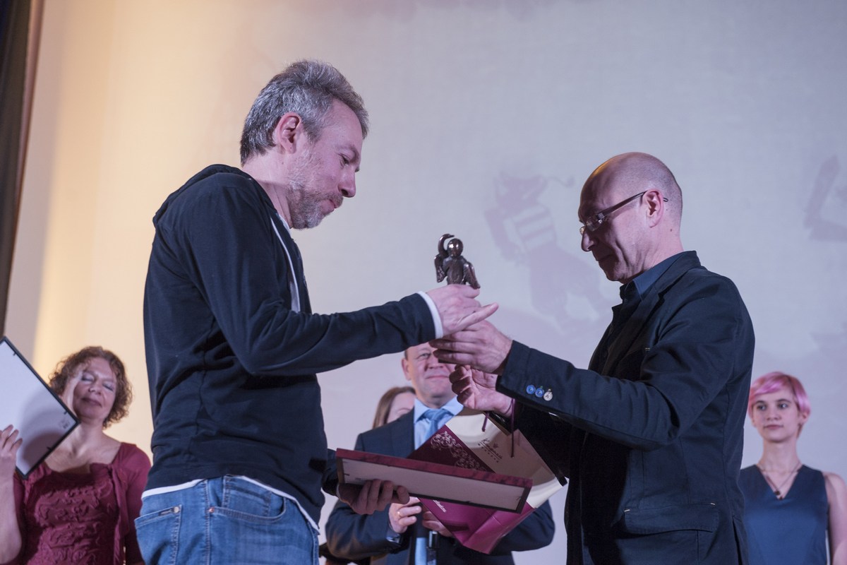 Вадим Жук на церемонии награждения В принципе, оно и понятно: за емким словом «конкурс» скрывались результаты смотра четырех совершенно разных программ — полного метра и короткометражных работ, студенческих фильмов и сериалов. При этом надо было отдельно отметить талантливых дебютантов, а также дать слово партнерам и критикам, у которых тоже были свои фавориты, пусть нередко совпадавшее с мнением жюри.
