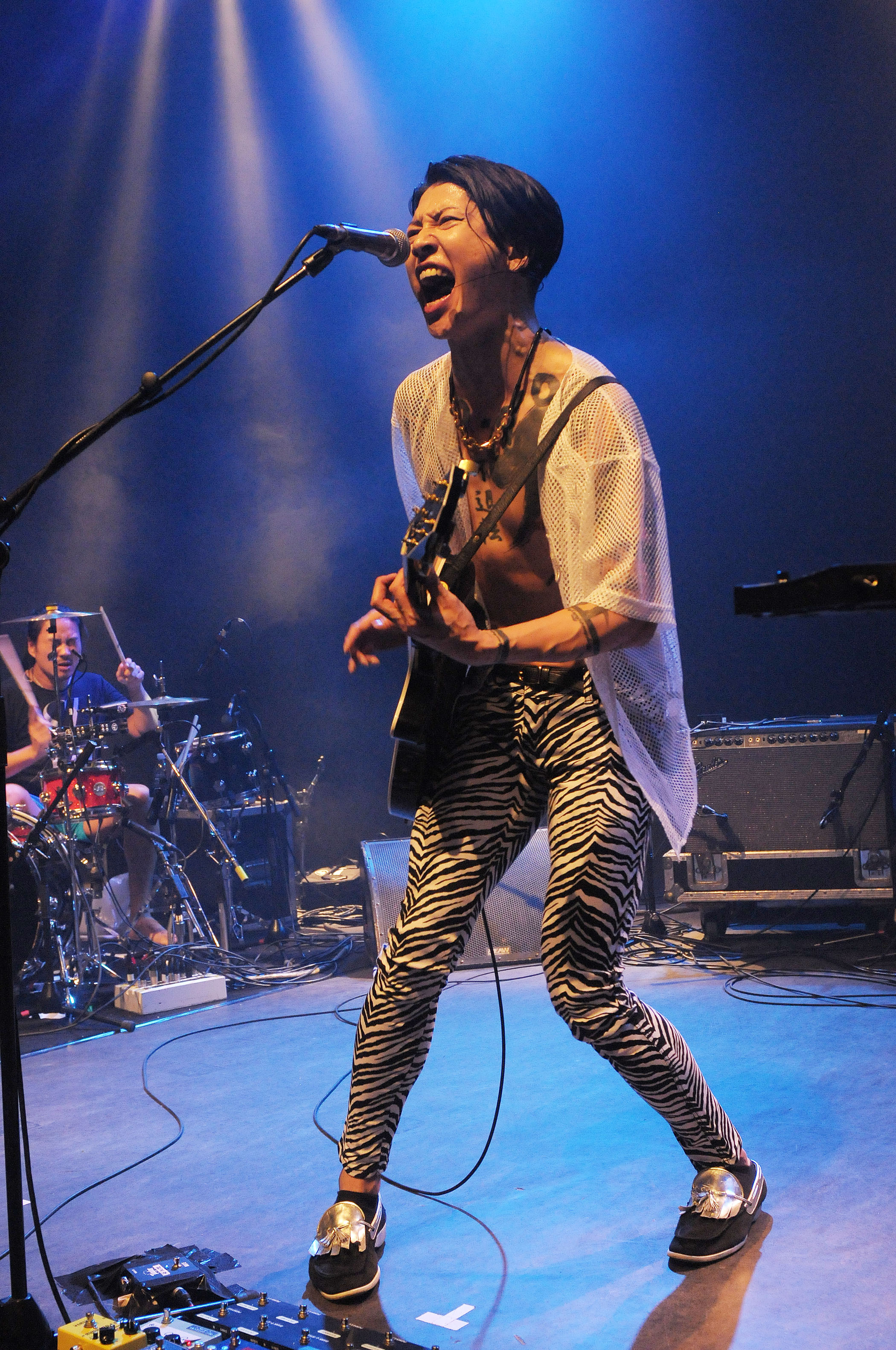 До начала сольной карьеры в 2002 году Мияви начинал как гитарист в группе жанра «визуальный стиль», уникальной японской глэм-панк-металлической субкультуры. По сравнению с ее представителями группа KISS, например, выглядит как обычные дворники. На фото – Мияви выступает на фестивале в Южной Корее в 2006 году.