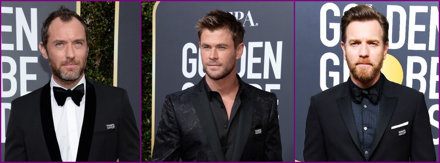 Итак, TimeIsUp – важное заявление современного Голливуда. Многие мужчины пришли с такими значками, чтобы поддержать женщин:
