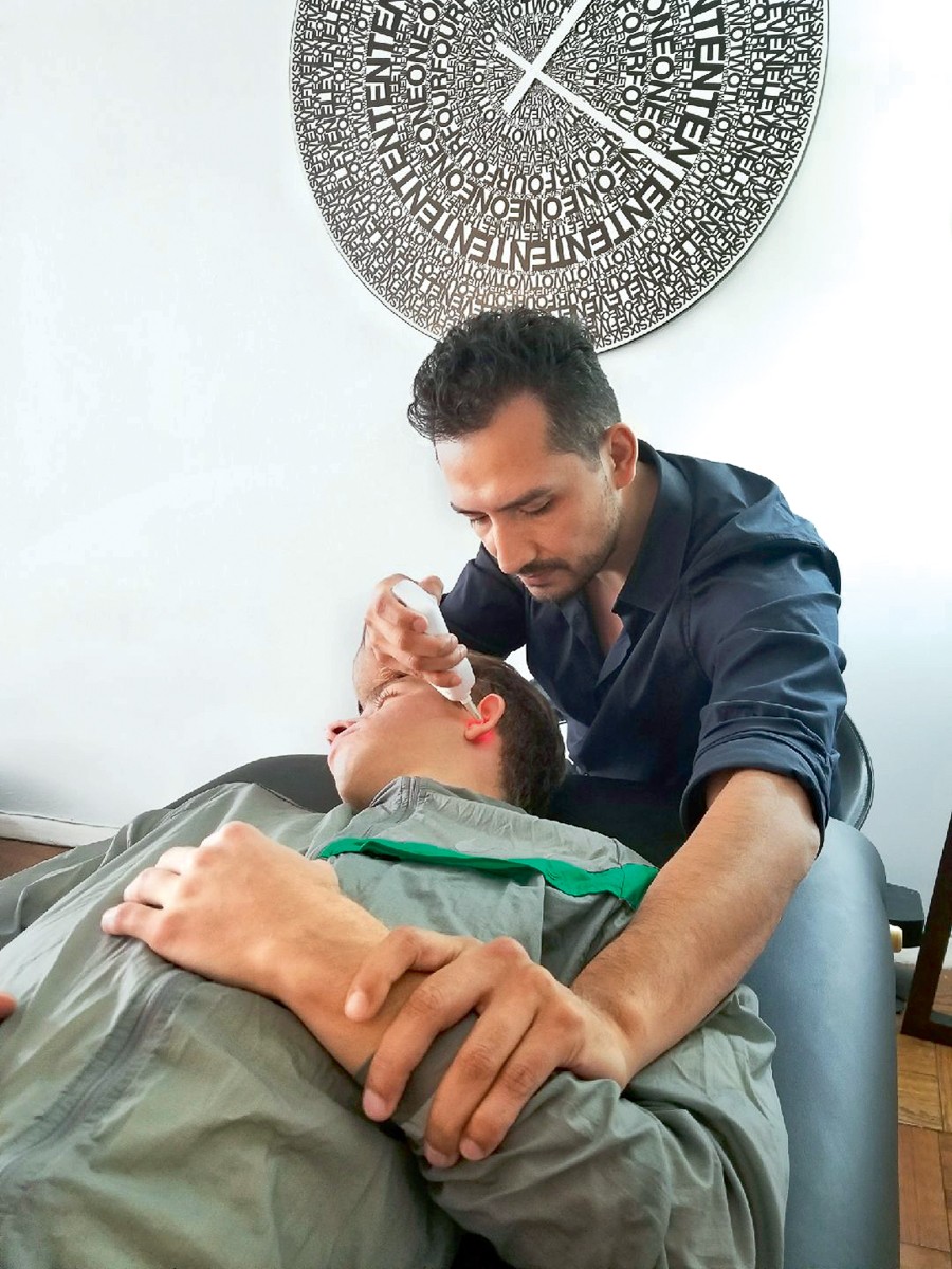 Постуролог Рафаэль Торрес проводит сеанс аурикулотерапии Материалы по теме