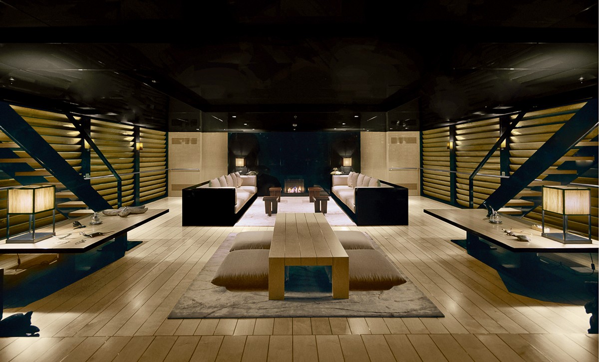 При проектировании интерьера дизайнер Клод Миссир учел образ жизни рэпера и обеспечил судно опциями для бурных вечеринок: бар, фуршетная зона и много свободного места для танцев. На верхней палубе (130 квадратных метров!) с бассейном есть все необходимое, чтобы принимать долгие и безмятежные солнечные ванны. Все уровни яхты соединяет лифт, в качестве дополнительных бонусов — спа и тренажеры.