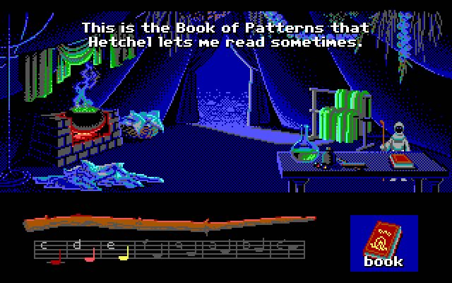 Loom Пятая игра LucasArts стоит особняком в числе прочих. Речь идет о Loom – игре во многом уникальной. Начать стоит с того, что в игре полностью пропало привычное взаимодействие с окружением: вместо обычной панели действий игрок должен играть небольшие четырехнотные мелодии, которые волшебным образом влияют на окружение. Примечательно, что у игры были уровни сложности, влияющие на отображение информации: на экспертном уровне сложности, к примеру, все заклинания приходилось воспринимать исключительно на слух, в то время, как на более простых ноты отображались на панели в нижней части экрана. Еще одна особенность – более серьезный тон игры в сравнении с предшественниками. Интересно и то, что саундтреком к игре выступает «Лебединое Озеро» Петра Ильича Чайковского.
