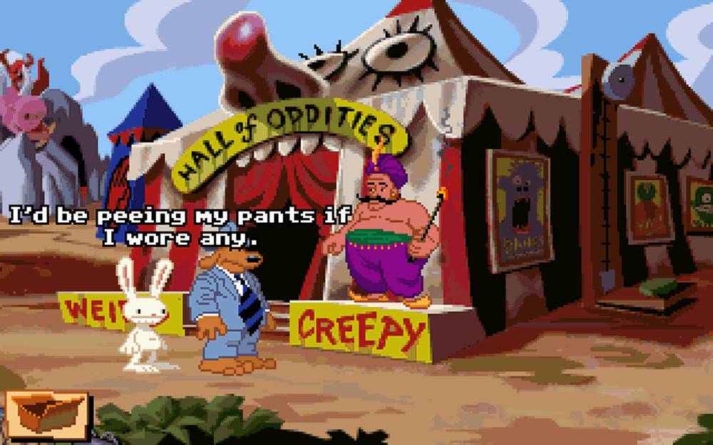 Sam & Max Hit the Road Настоящую же революцию LucasArts совершают в 1993 году, выпустив Sam & Max Hit the Road. Игра брала за основу комиксы Стива Парсела об антропоморфном псе Сэме и его друге, гиперактивном кролике Максе, частных детективах. Комикс имел несколько более взрослый тон, чем игра, но Парсел остался очень доволен результатом.