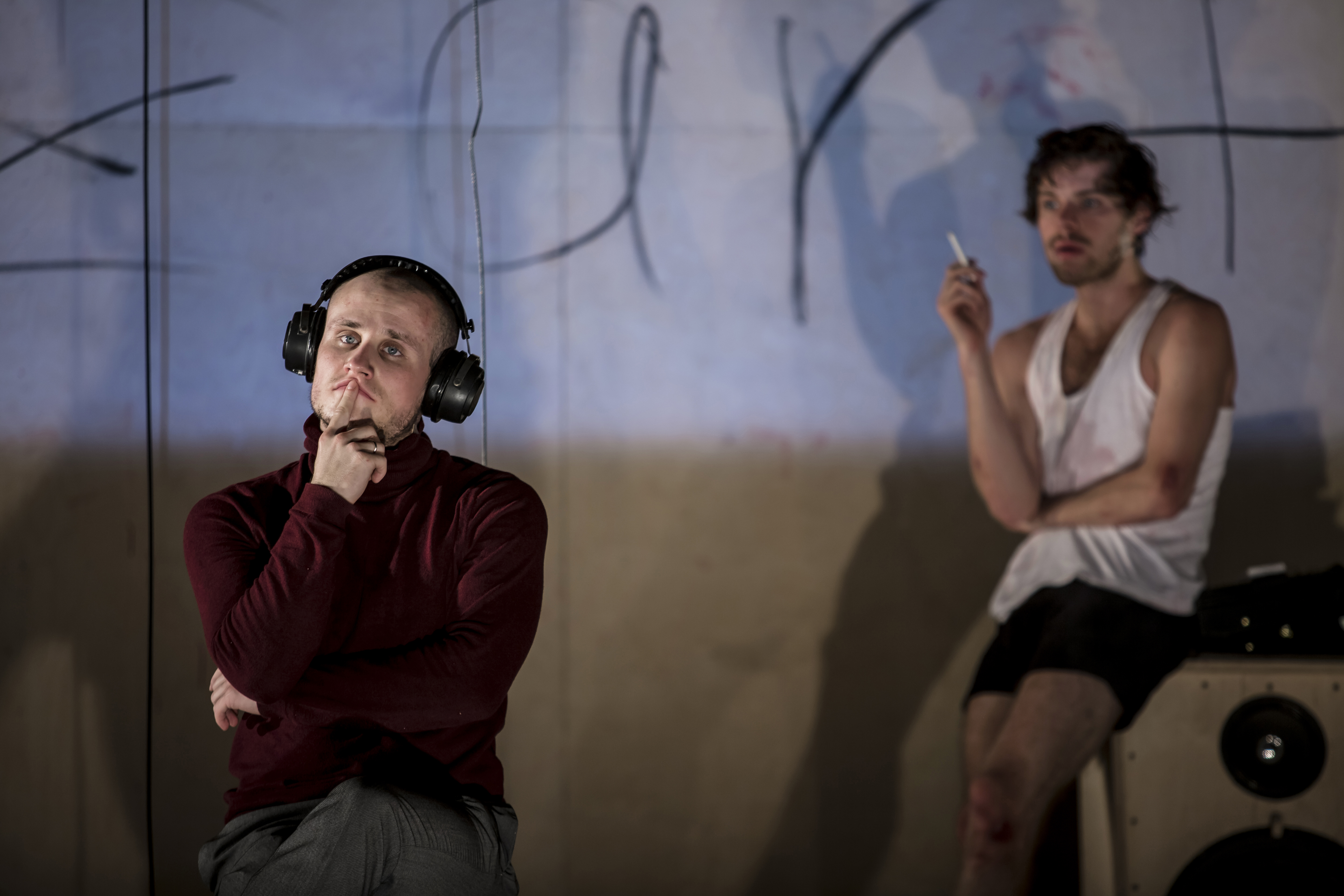 Спектакль начинается со сцены в привокзальном буфете. Разношерстная публика, каждый занят своим делом, работает никому не интересный телевизор. И в это забытое Богом место приходит некто, то ли киборг, то ли еще кто-то, в программке обозначенный Воином. Он выбирает из этого сборища неприметного грязного пьянчужку, «чтобы вырвать у него язык и грудь рассечь». Делает все натурально - театрально. Течет бутафорская кровь, а красавец Воин (Евгений Романцев) еще и распинает избранника божьего (артист Филипп Авдеев, в программке названный Пророком). Такова участь всякого избранника – быть или непременно гонимым, или распинаемым. Его, потерянного, спрятавшегося в каких-то рулонах от пережитого потрясения, обнаруживает приличный с виду персонаж. Из пушкинских текстов, возникающих на экране, становится ясно - это Сальери: «Ремесло Поставил я подножием искусств.. Поверил я алгеброй гармонию». Но ясно все-таки не всем. Не удержавшись, спросила соседку, молодую женщину лет 30-ти: «Вы знаете, откуда эти строки? ». «Нет» - прозвучало в ответ. Впрочем, в этом я почти не сомневалась. Еще одна миссия, которую взял на себя Серебренников – образовательная. Зная своего зрителя, он практически каждой свой постановкой русской классики словно возвращает публику не только к подзабытым великим произведениям, которые все «проходили» в школе, но и к прекрасному русскому языку. Сальери (артист Никита Кукушкин) – наш современник, явно человек в жизни вполне успешный: дорогие ботинки, кейс. Поначалу он своей кровью – в прямом смысле, делая переливание - спасает бродяжку. Знает, разумеется, кто перед ним: сам Моцарт. Он как никто понимает, что спасает гения, чтобы затем – по версии Пушкина – его и уничтожить, отравив. Сальери, как никто, умеет слушать музыку Моцарта, но простая человеческая зависть одержит верх над преклонением. О чем подумаешь непременно - сколько таких вот, кому шестикрылый серафим «угль, пылающий огнем, во грудь отверстую водвинул», спивается в спальных районах, на окраинах больших городов. Они не умеют и не могут торговать, не смогли адаптироваться в жизни в отличие от многочисленных сальери. Их «огонь, пылающий в груди» никому не нужен, участь их предрешена. Реквием Моцарта звучит как поминальная молитва по всем избранным, временем не призванным. А следом выходит на сцену рэпер Хаски. И надо признать, его тексты заслуживают внимания.