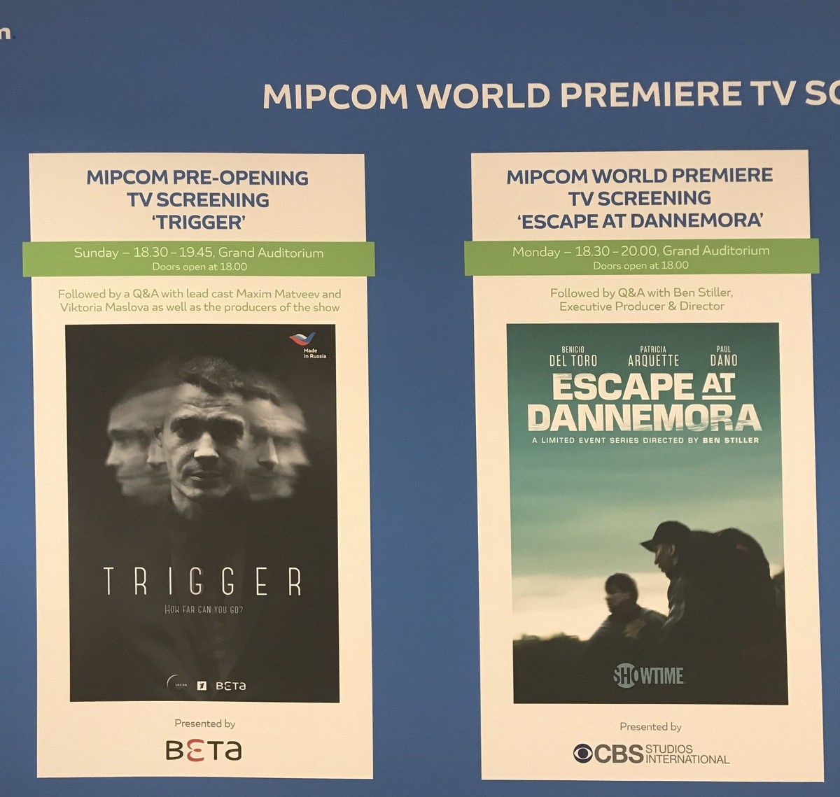 На MIPCOM 2018 состоялось сразу несколько отечественных премьер, включая мировую — честь выпала Александру Цекало, его продюсерской компании «Среда» и их новому детищу «Триггер» с Максимом Матвеевым в главной роли. Слово «честь» — не ирония: «Триггер» открывал MIPCOM специальным предпоказом в главном кинозале дворца Фестивалей, а после премьеры состоялась сессия вопросов и ответов со съемочной группой — такое бывает только у больших западных проектов. Объясняется это еще и тем, что весной «Триггер» стал финалистом питчинга лучших международных сериалов MIPDrama Screenings 2018 — поэтому конечно же, осеннюю сессию рынка открывал именно этот проект.