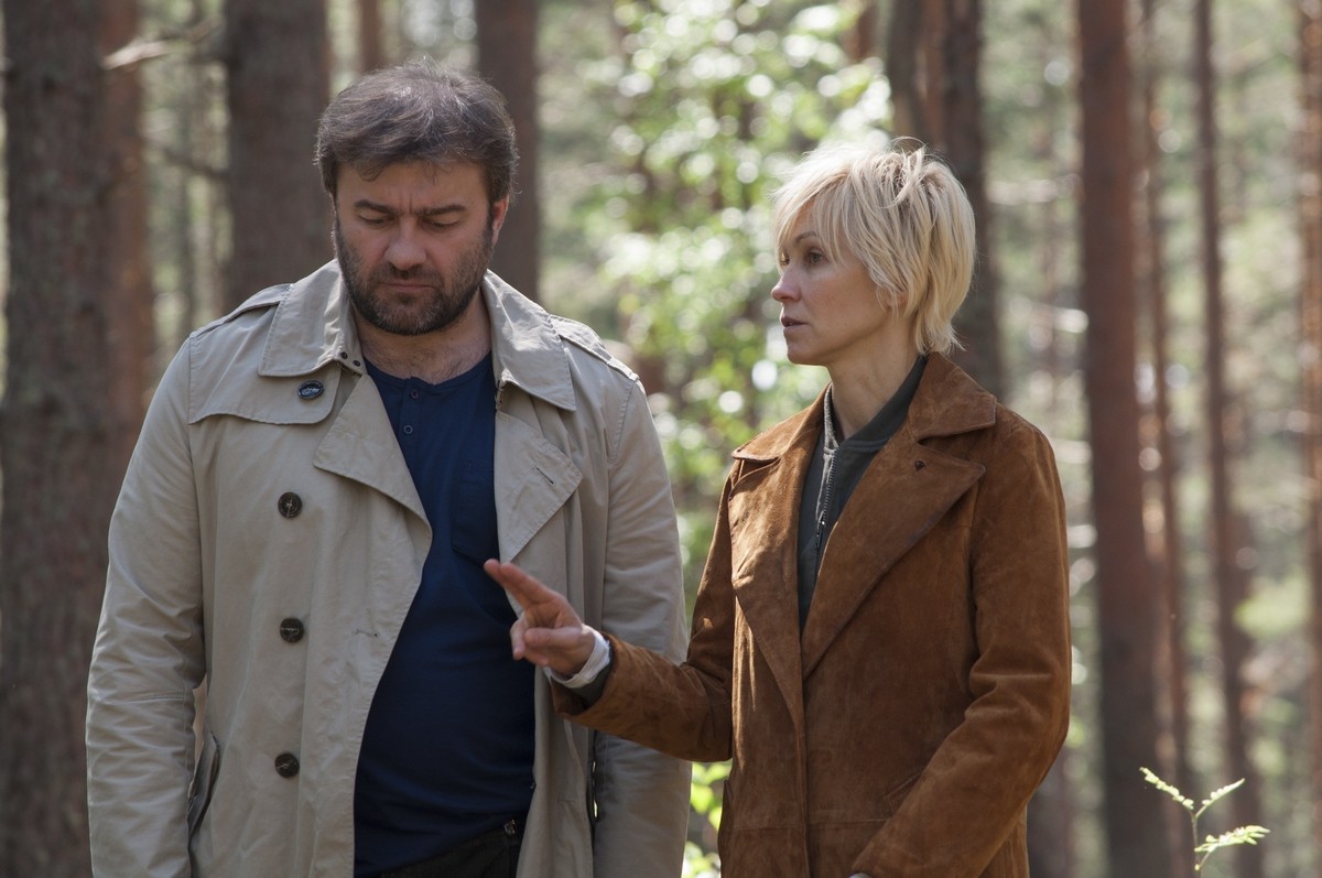 Кадр из сериала «Мост» Редакция THR RussiaВ Санкт-Петербурге завершились съёмки российской адаптации известного шведского-датского детектива «Мост» (Broen/Bron). Главные роли в версии НТВ исполняют Ингеборга Дапкунайте и Михаил Пореченков.Напомним, что действие сериала начинается на мосту между Ивангородом и Нарвой, где проходит граница между Россией и Эстонией – на нем обнаружили труп женщины. Тело жертвы лежит ровно посередине – и в дело оказываются втянуты службы двух государств. Из Таллинна на место происшествия прибывает старший инспектор Центральной криминальной полиции Инга Веерма (Ингеборга Дапкунайте), а с российской стороны - следователь СК РФ Максим Казанцев (Михаил Пореченков). Теперь героям придётся работать бок о бок, несмотря на разность менталитета и профессиональных навыков.