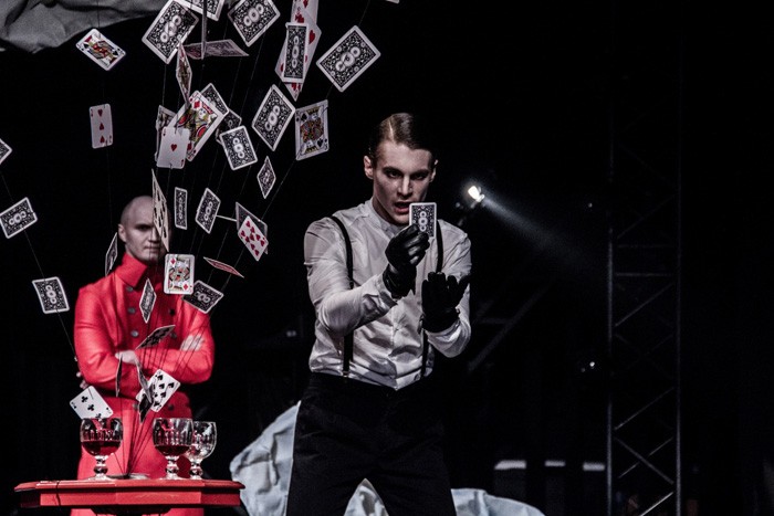 Репетициям и премьере спектакля (к слову, сценография потрясающая!) в фильме отведено не так уж много времени, однако влияние пушкинской повести и ее оперной инкарнации невозможно переоценить. В первую очередь дело в самой истории, поскольку получить вожделенную роль Андрей пытается, убедив Майер, что он и есть Германн, — как бы странно это ни звучало. Экзальтированный певец отправляется в подпольное казино, где делает ставки в давно забытой карточной игре штосс — в точности как у Пушкина — на тройку, семерку и туз.