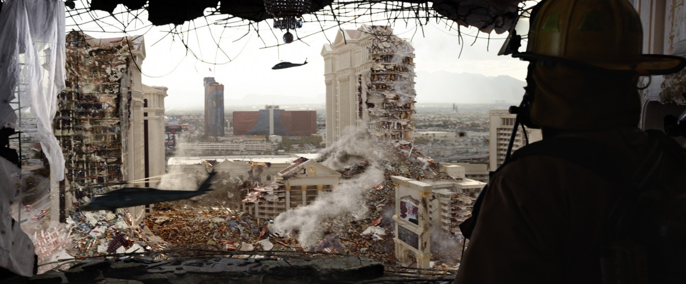 Тот факт, что в новой «Годзилле» человечество сталкивается сразу с несколькими чудовищами – это, в общем-то, никакой уже не спойлер. Все, кто внимательно следил за трейлерами, уже и так в курсе. Увы, но в промо-материалах к фильму показали все самое интересное и впечатляющее – например, в один из тизеров, вышедших чуть ли не полгода назад, включили действительно эффектную сцену, в которой военные десантируются в атакуемый кайдзю город. Сказать, что в «Годзилле» больше и смотреть-то не на что, было бы неверно. Это вполне профессиональное кино, набитое спецэффектами, соответствующими сегодняшнему уровню. Просто в ленте нет ничего, что отличало бы ее от множества других фильмов-катастроф. Небоскребы и мосты рушатся, люди в панике разбегаются, палят тяжелые орудия – все это мы уже видели, причем неоднократно.