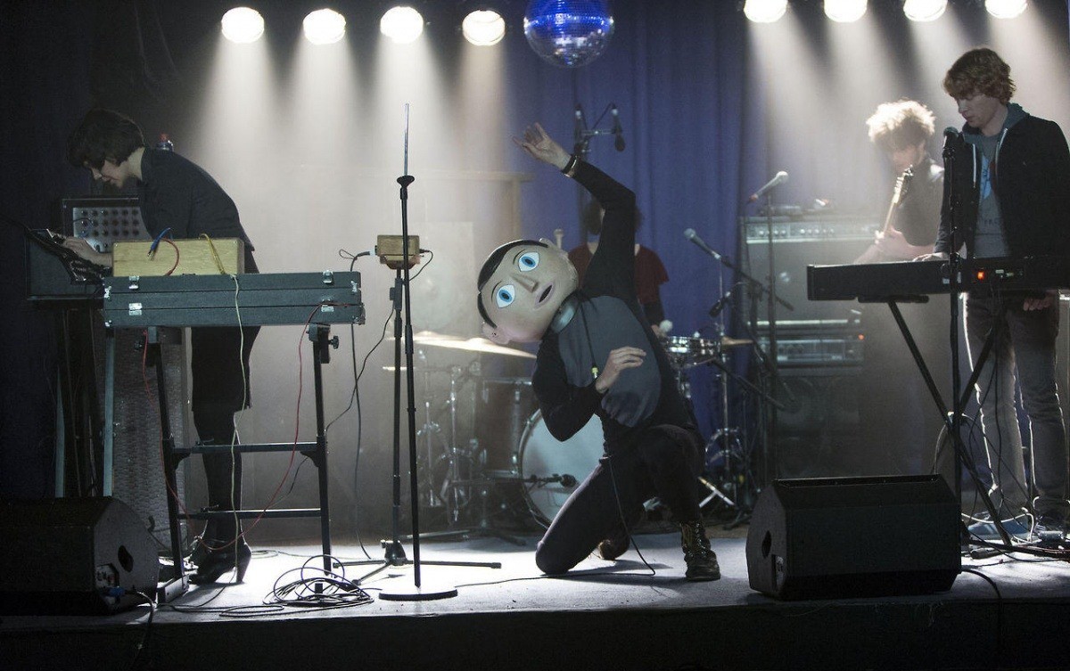Кадр из фильма «Фрэнк» Тодд МакКартиДрама о буднях ирландской музыкальной группы, возглавляемой бывшим пациентом дурдома, гением с картонным лицом.
