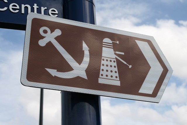 Но вернемся в залив. Если прогуляться по живописной набережной с видом на припаркованные яхты и утесы Пенарта на горизонте, можно дойти до огромного синего ангара, на углу которого приветливо стоит синяя полицейская будка 60-х. Стоит только зайти внутрь, вам в лицо уставится дуло далека – на удивление, не менее приветливое. Этот ангар – музей Doctor Who Experience, ради которого фанаты сериала не брезгуют специально приехать в Кардифф.